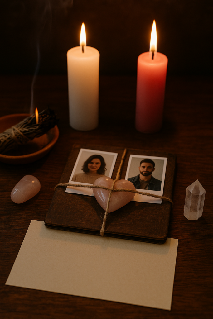Este ritual está diseñado para trabajar el vínculo desde la paz y la apertura, no desde la obsesión. Realízalo con calma y sin prisas.