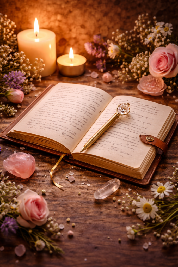 2. Prepara un pequeño altar. Una vela blanca o rosada, un vaso de agua y, si te gusta, un cristal (como cuarzo rosa o amatista). Este rincón será tu lugar de encuentro contigo mismo durante los 21 días.